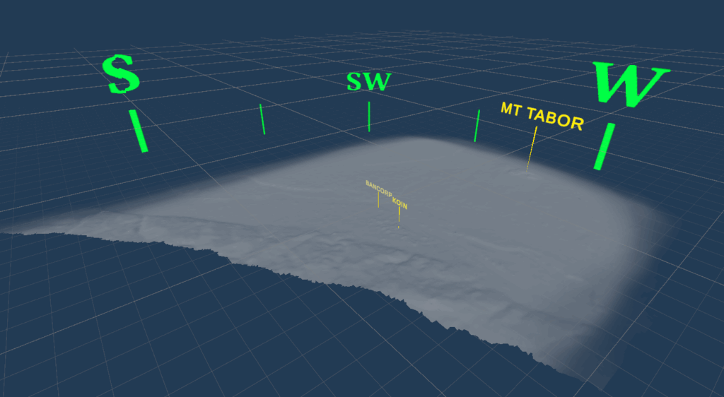 To get the virtual landscape to line up with the physical one, the app needs to know pretty precisely where things are geographically. This could be done using points of reference, but the changing seasons and lighting of the natural world, combined with the small visual size of most of the available landmarks, means that it would be very difficult to get the app to identify specific reference points. For example, getting the camera to identify the location of the Bancorp tower in downtown Portland would be nearly impossible, although it’s easy for a human. A phone’s location data can tell the approximate direction that the camera is being pointed, which could help, but it doesn’t have nearly enough precision for what we need to do here.